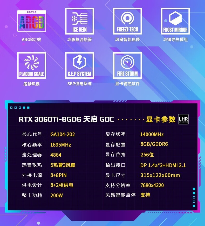 索泰(ZOTAC)GeForceRTX3060Ti-8GGD