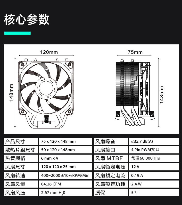 追风者Polar伯乐S4塔式CPU风冷散热器
